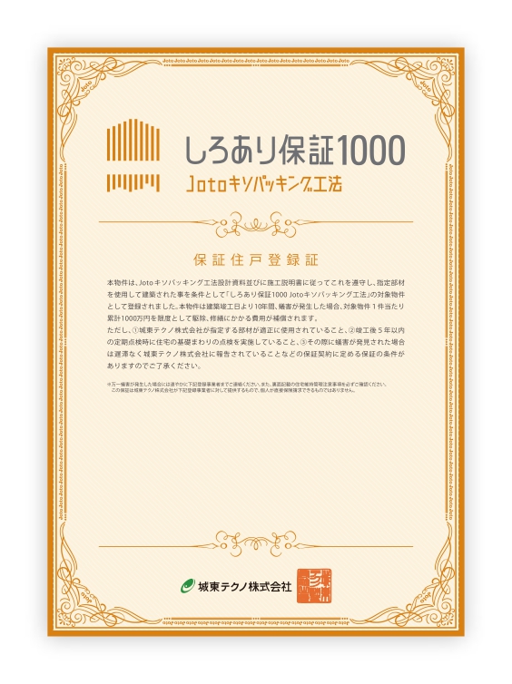 シロアリ防除工事日より10年間の保証をいたします。