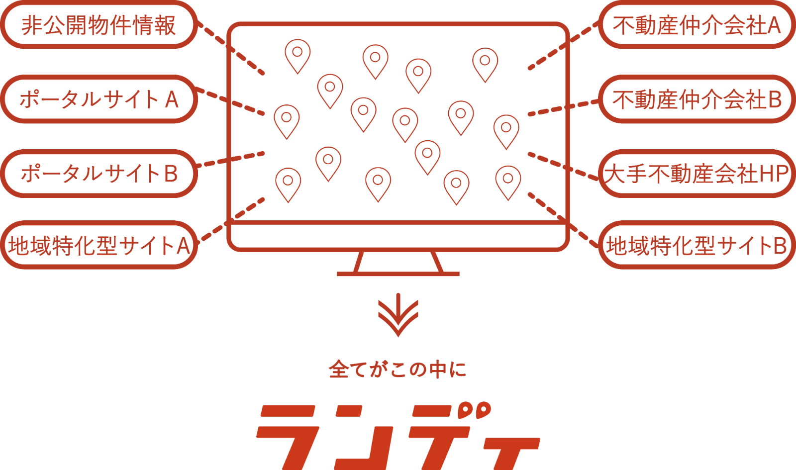 有名な不動産サイトの土地情報を、ひとつのアプリでまとめて検索できるサービスです。