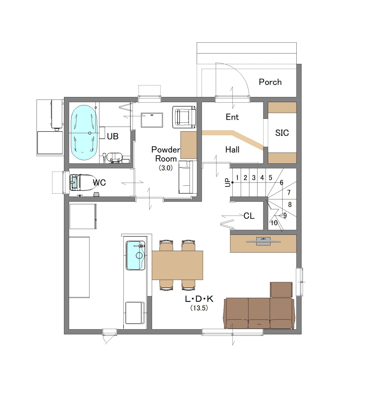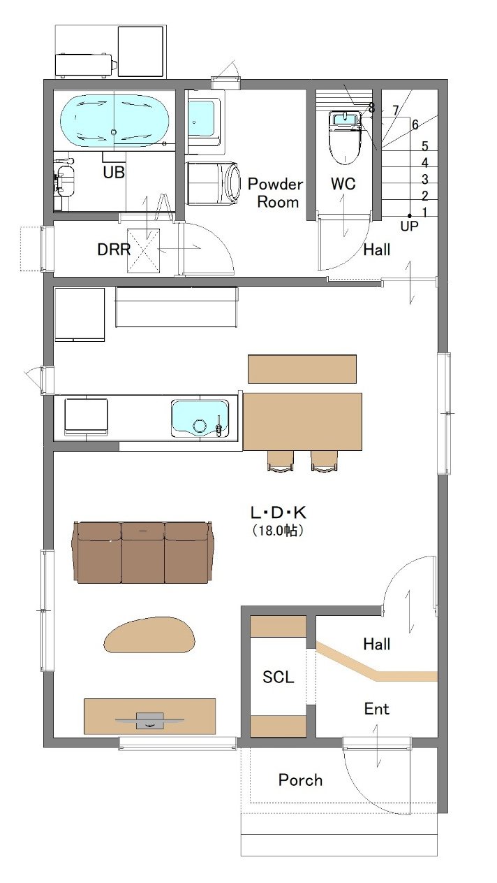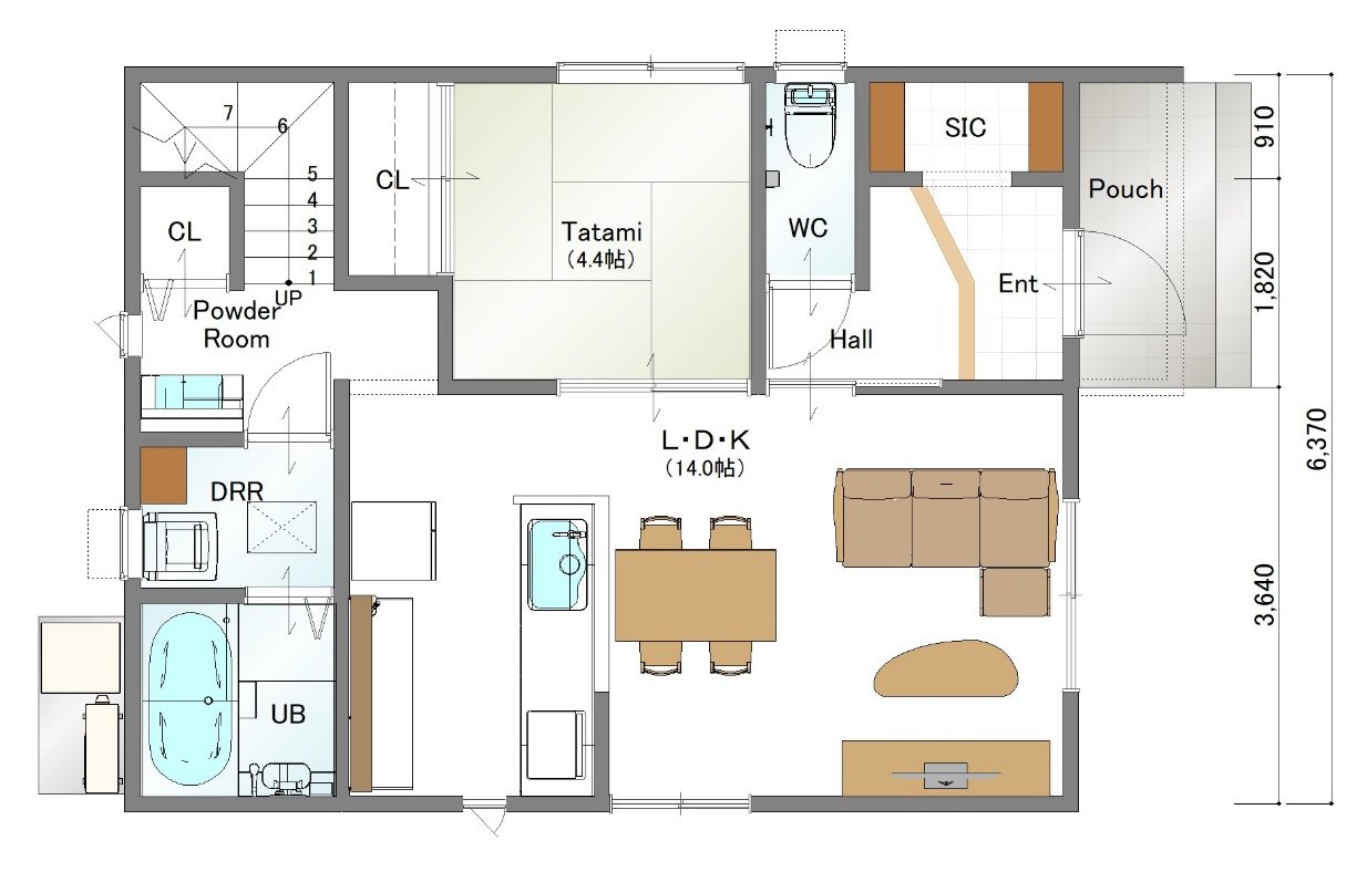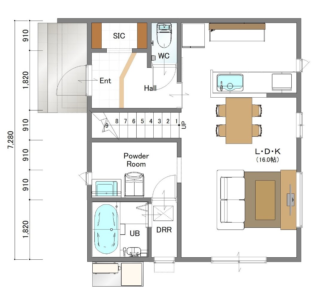 キッチンとダイニングを横並びにし、水回りもまとめることで毎日の家事がスムーズ&時短になります。