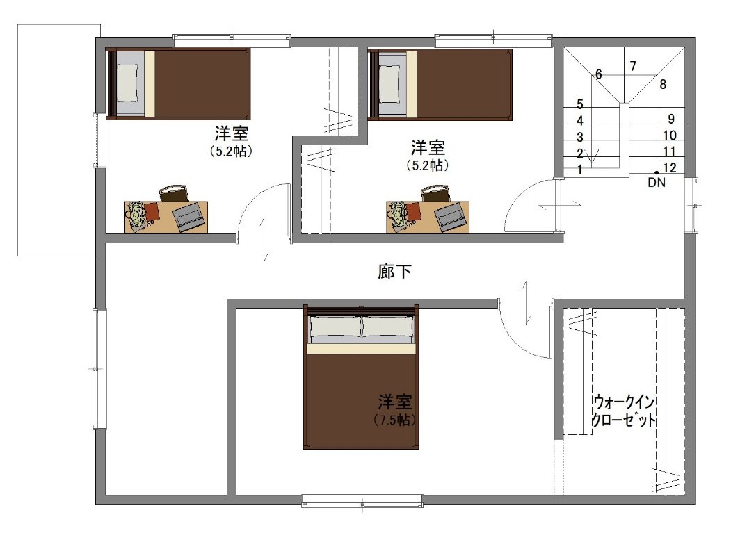 書斎コーナーを設けることもでき、ライフスタイルに合わせた使い方が可能です。