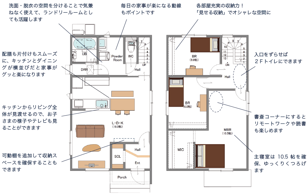 敷地に少しゆとりがある方向け、暮らしやすさにこだわった31坪プランです。