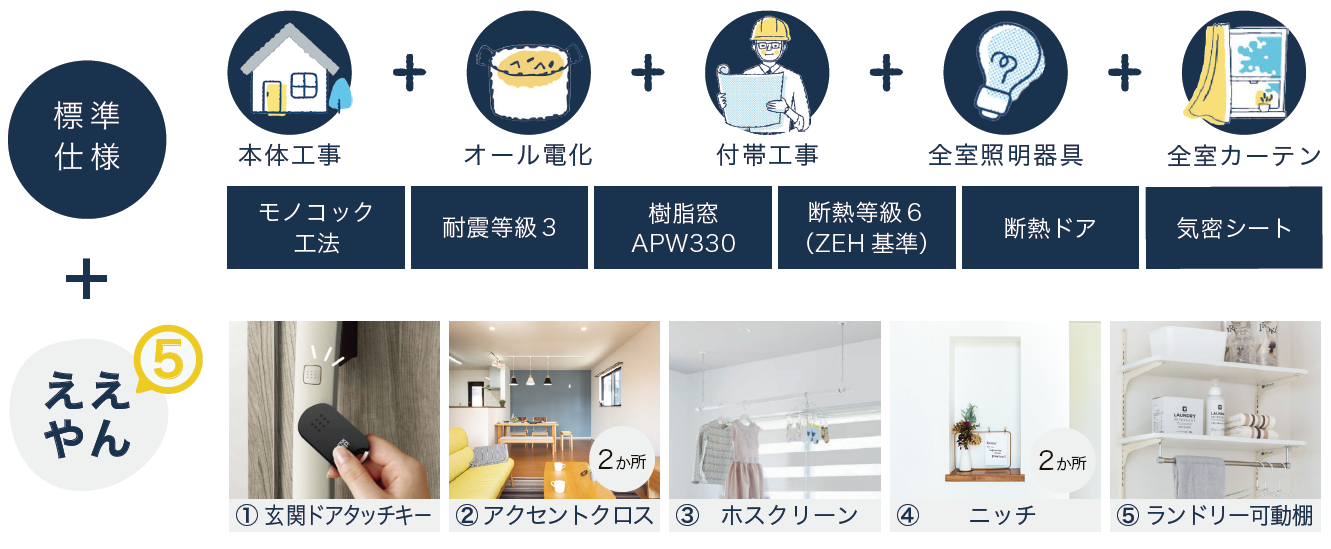 さらに標準仕様に加え、あったらうれしい人気の設備『ええやん5』をセレクト!