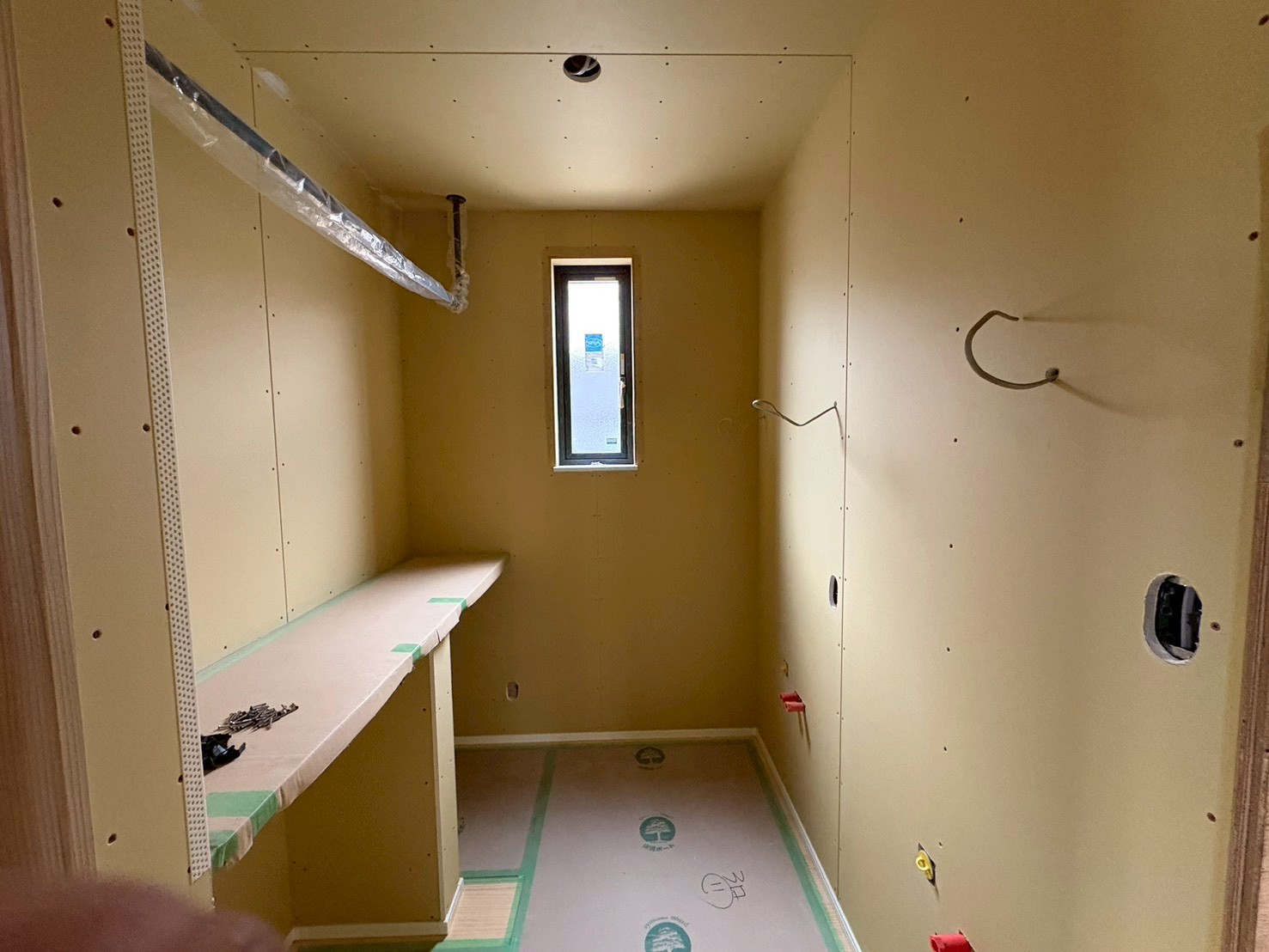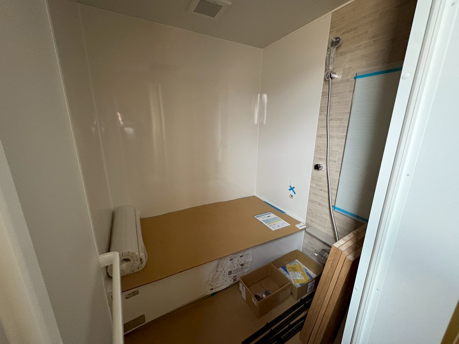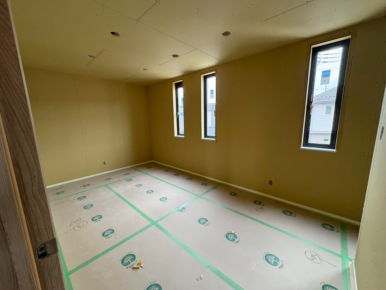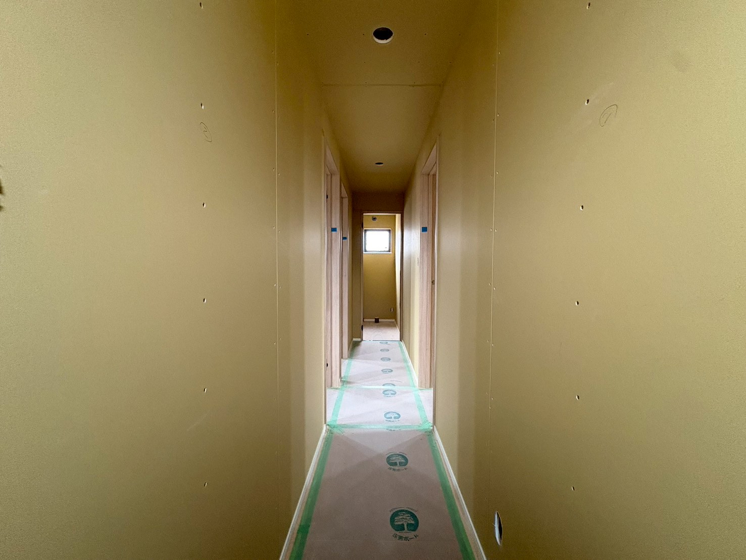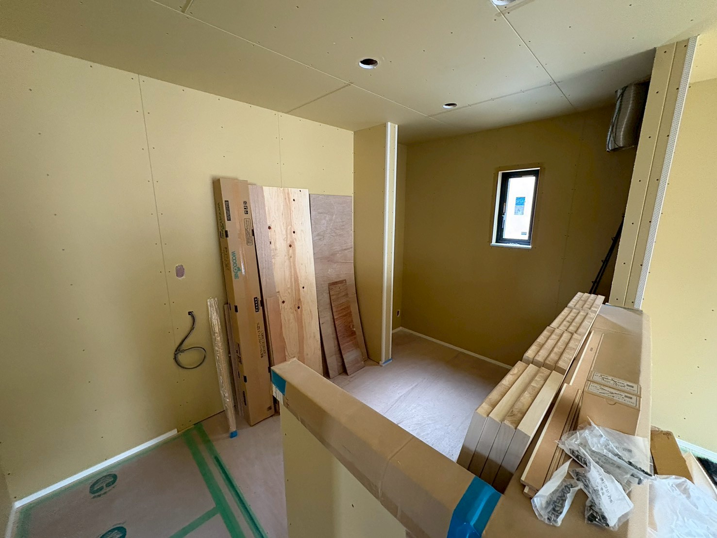 骨組みが組みあがり、これからクロスや設備などの仕上げ工事へと進んでいくタイミング。