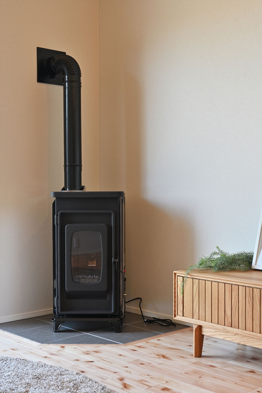 ご主人様:『ペレットストーブのみで温かいですよ。エアコンは送風にしています。燃料は1袋600円~700円ほどで3日間で使います。』