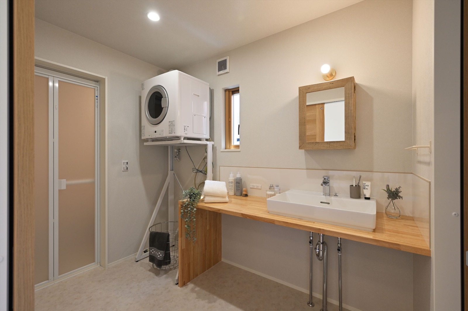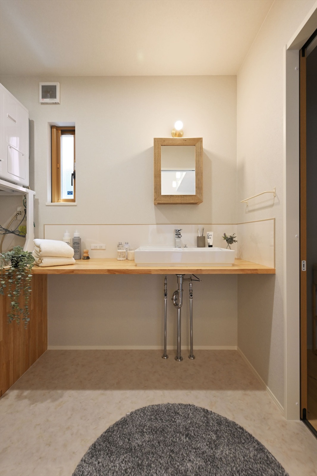 洗面台はカウンターに洗面ボウルを置くシンプルな造りとなっていますが収納面は大丈夫ですか?