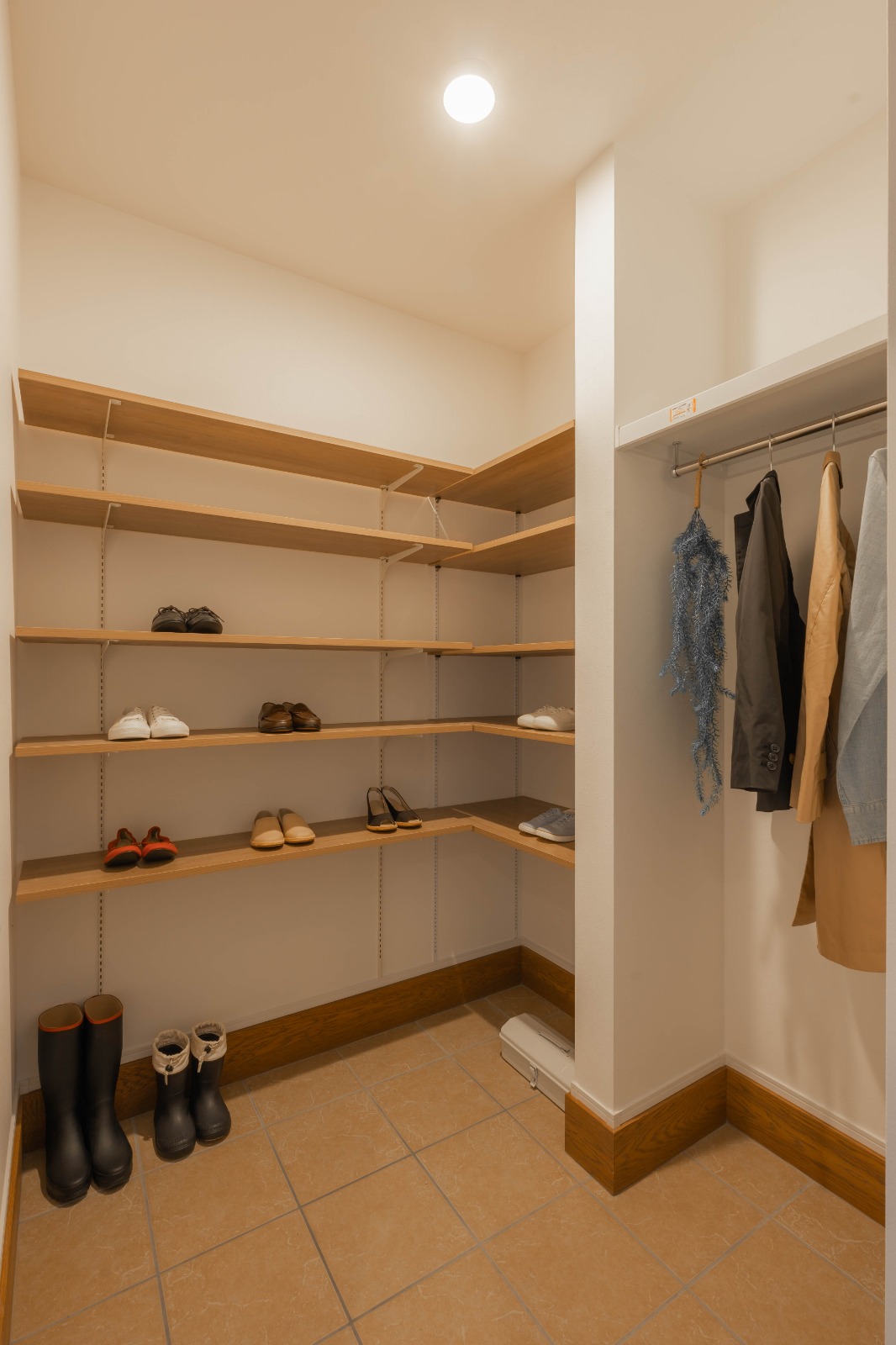 靴やコート掛け、アウトドア用品などをたっぷり収納していただけます。