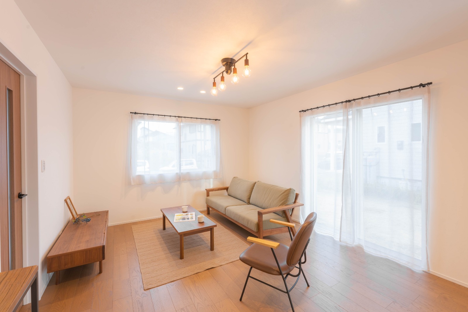 木の質感に包まれて、ゆったり過ごす広々リビング。