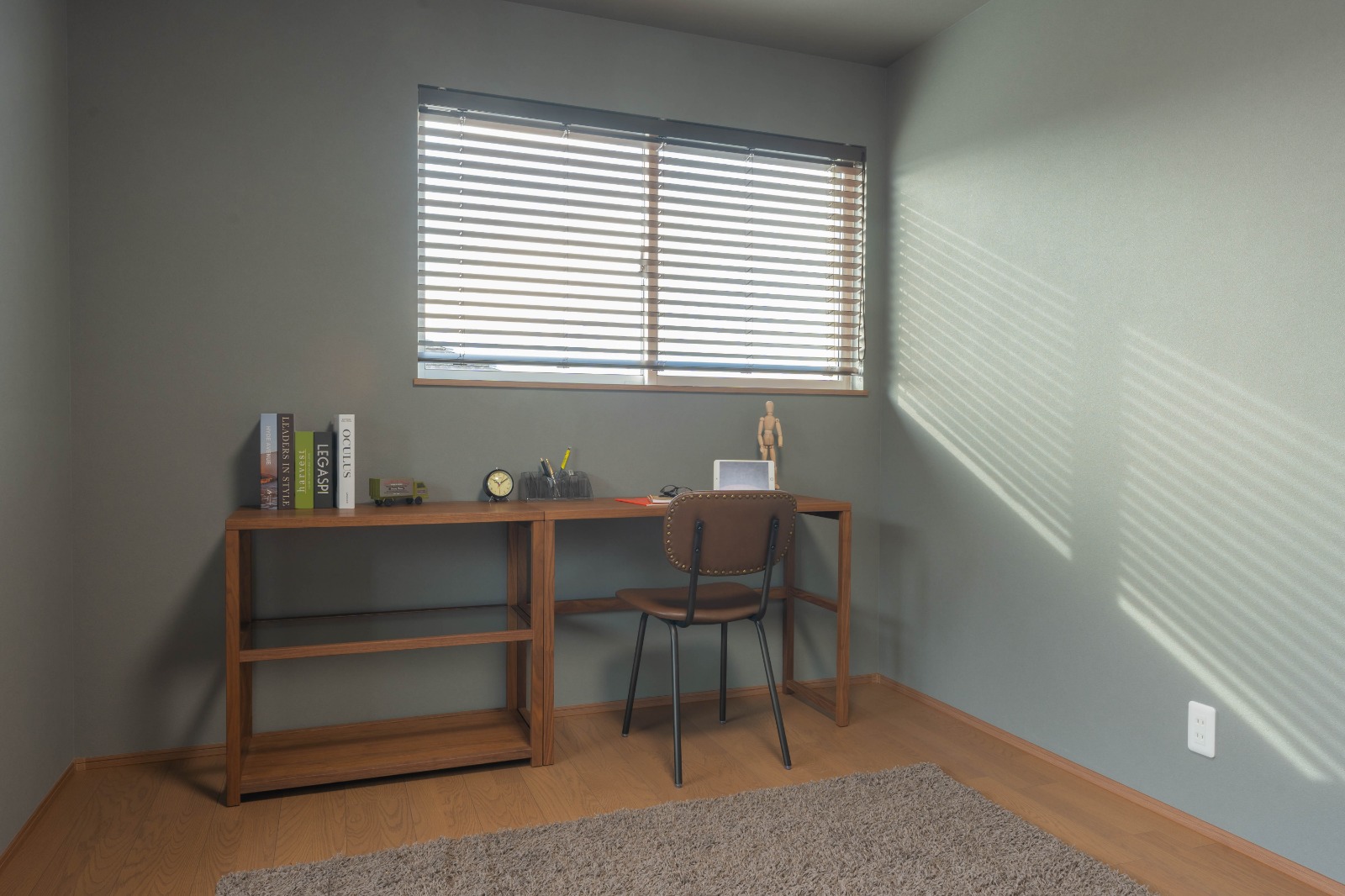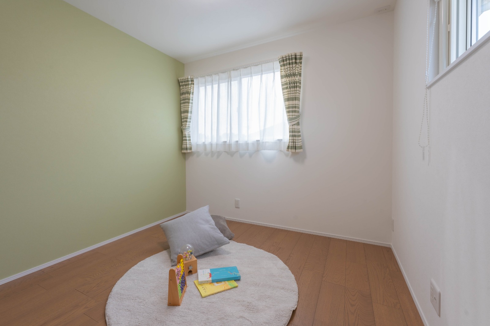 グリーンのクロスを用いた2階の個室。家族それぞれが好きなものを選べるのも注文住宅の楽しさです。