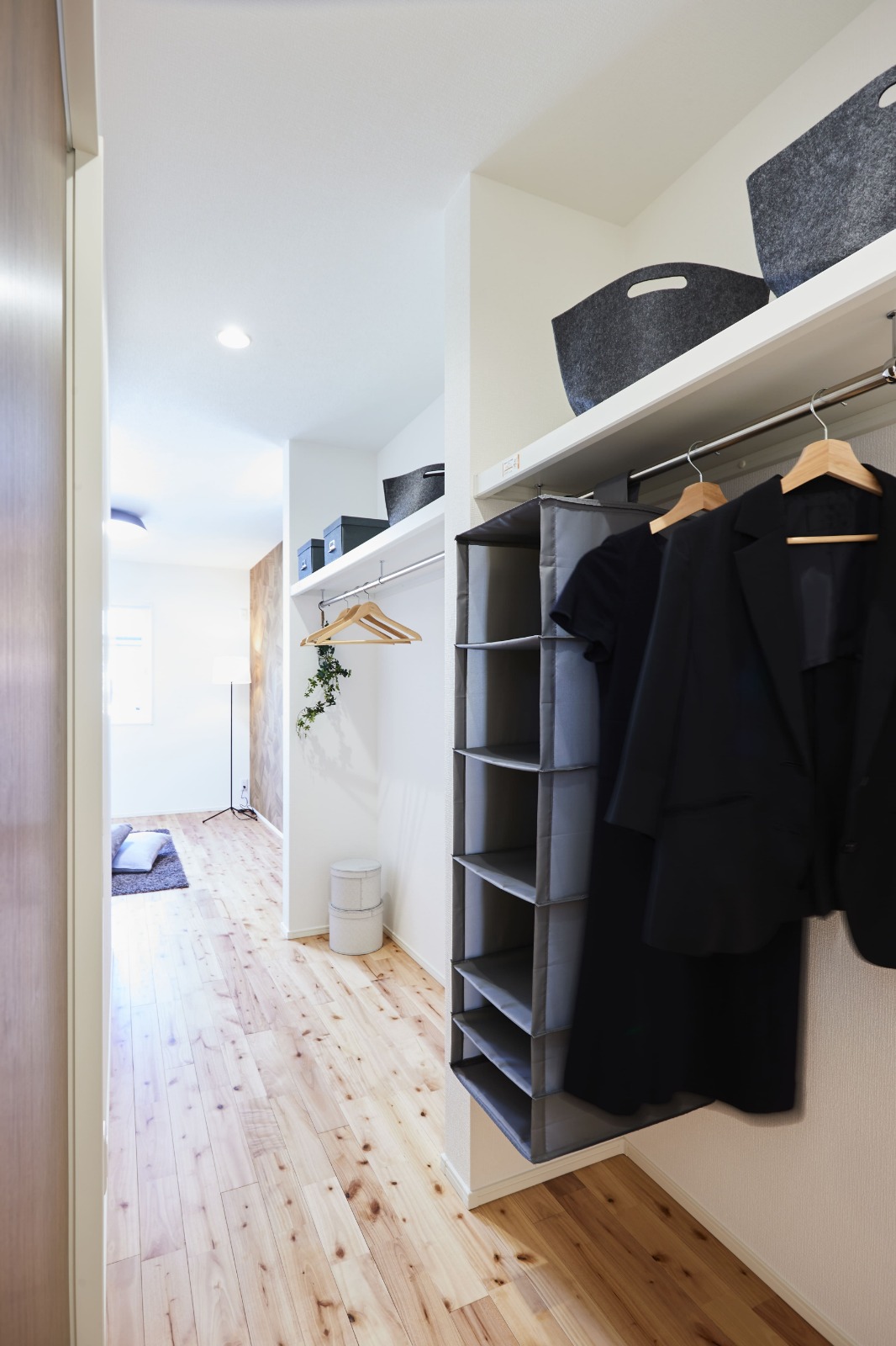 リビングから寝室に移動できるウォークスルークローゼット。無駄のない効率の良い動線に。