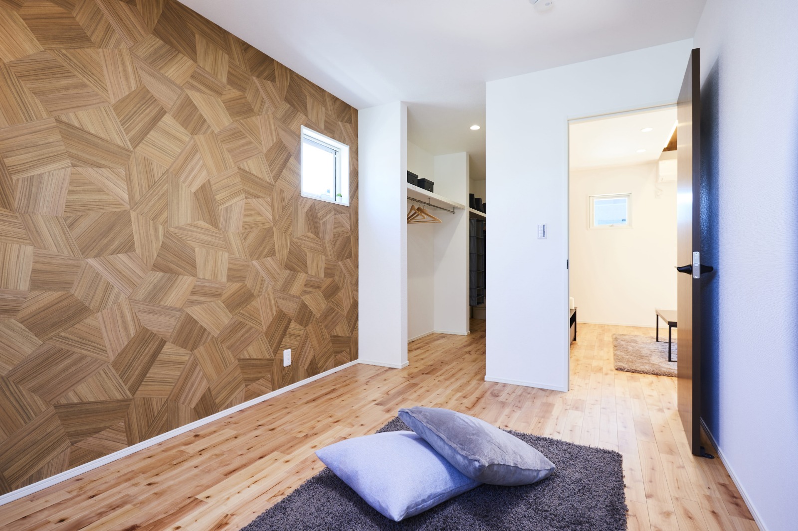 リビングからもウォークインクローゼットからも出入りできる回遊動線◎お子様のお昼寝などにお使いいただけて便利。寝室が1階にあると、日常生活が1階で完結できます。