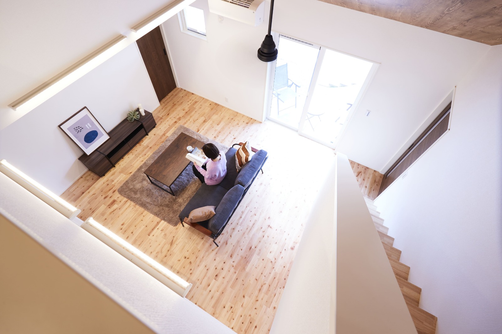 勾配天井が広がる開放的なリビングは、まるでリゾートにいるかのような心地よさ。