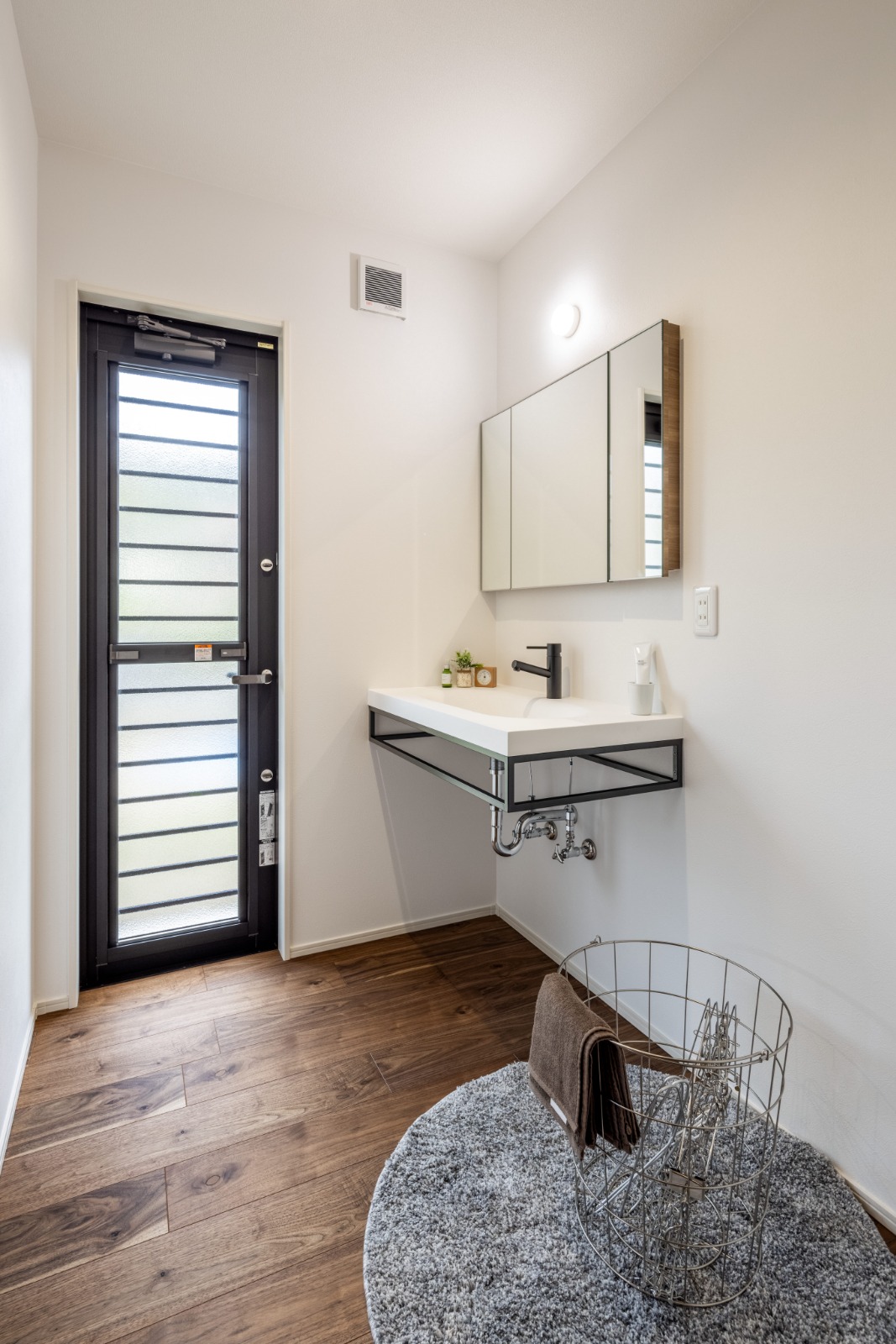 勝手口に隣接した洗面室。外での洗濯干しでも楽に出入り。