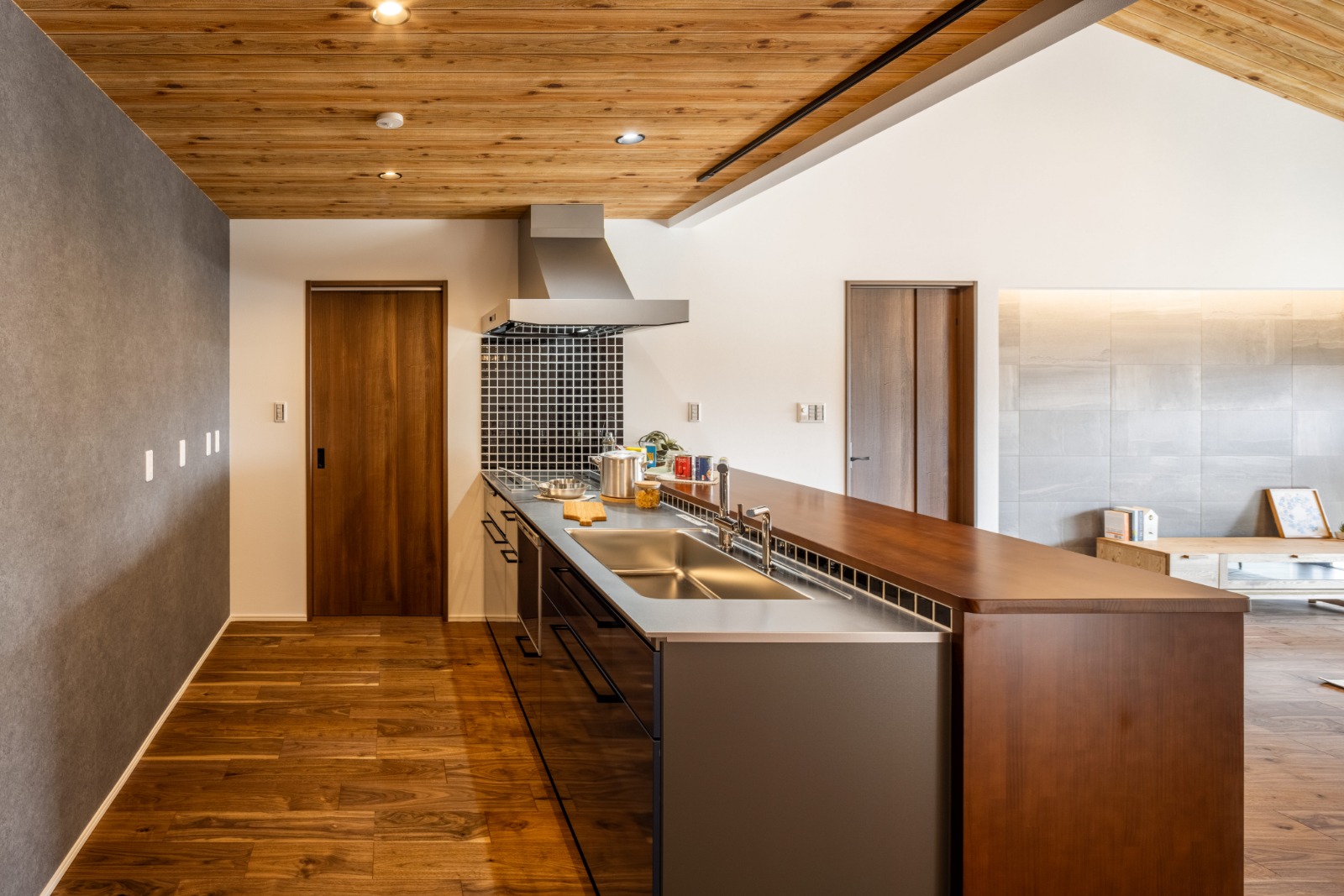 キッチンカウンターは椅子を置けばバーカウンターのように使用でき、大人時間を満喫。