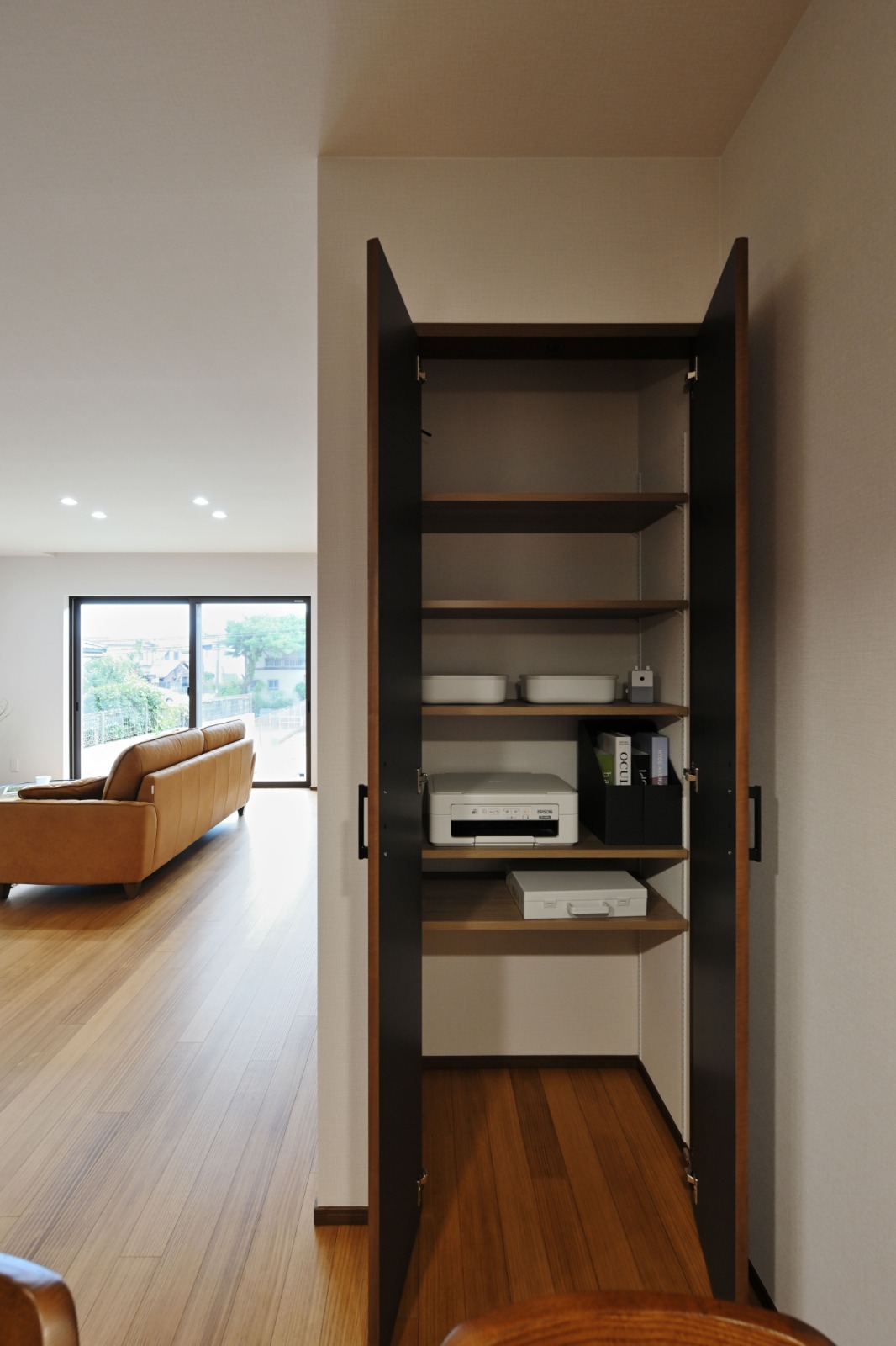 キッチン横にはパントリーを設けられました。お料理中に必要なものをすぐに取れるので便利◎