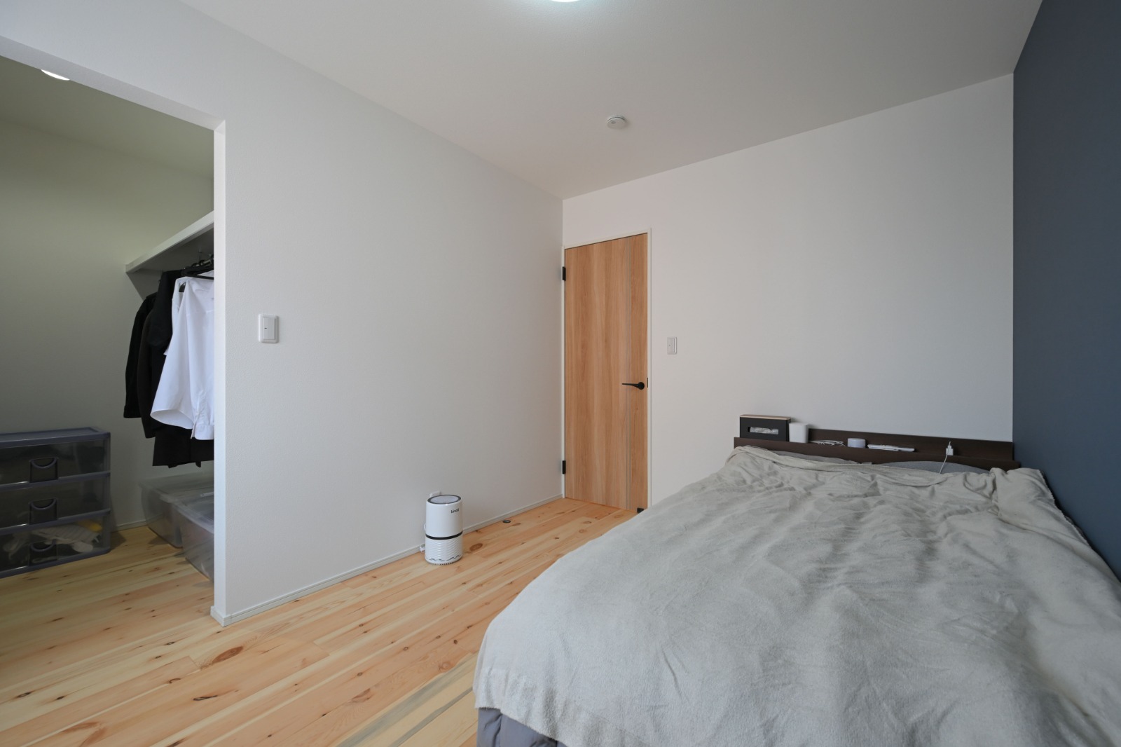 寝室にはウォークインクローゼットを。冬物のものや普段あまり使わないものを収納されています。