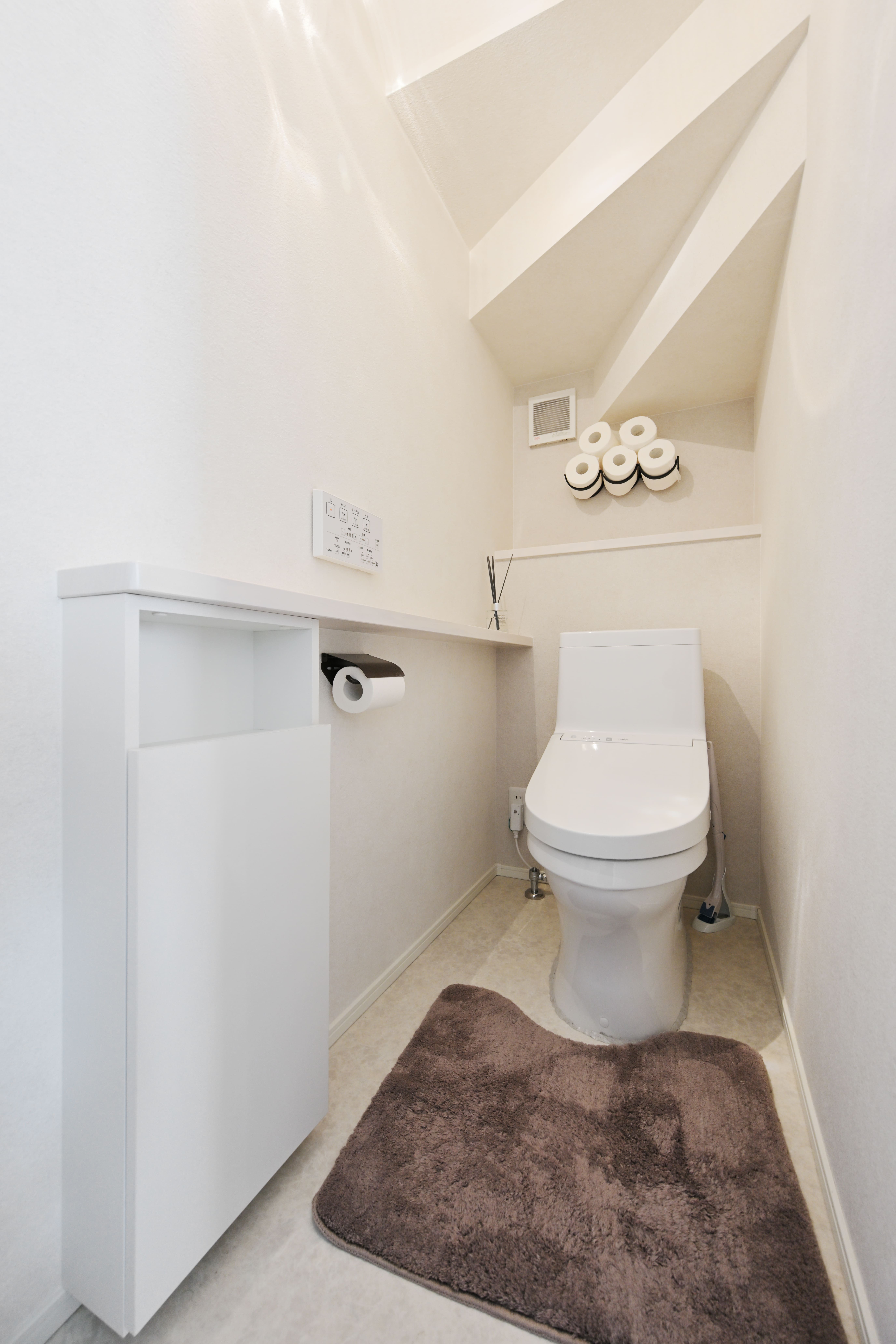階段下トイレを採用。かわいらしい照明で落ち着く空間に。